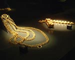 籠の中から出てきた硬貨のかたまりは、Scheletroから出土したもの玉髄めのうのカップと多種のマテリアルの首飾りはスケルトン郡から出土したもの。おまじない的な要素を持つ20体の骸骨群の一男性の横から出土した箱の中からは、メスやピンセット、シリンダーなどの外科手術セットが発見