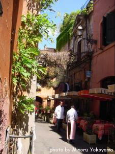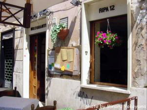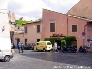 | レストラン ロモロ ジャニコロの坂を下りてくるとこのレストランにぶつかります。 中世の天才画家 ラファエロの恋人が暮らしていた家です。 |
