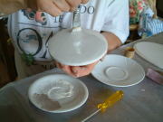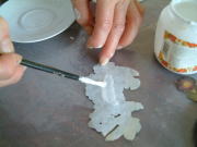 土台が乾いたら、紙にのりを塗ります。端っこまでしっかりと薄く塗ります