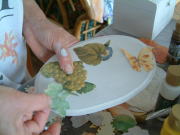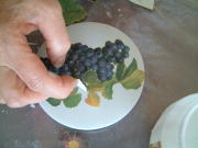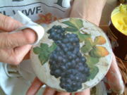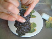 今回は秋のイメージで題材が葡萄と暗いので、土台は明るい色が映えるとのこと。土台の色は、アイボリー系にしました。塗りこみます。