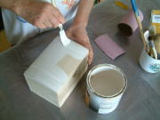 下地を作ります。fondo gesso acrilicoをpennelloで全体に塗ります。一回乾いたら、もう一度。(合計2回)