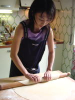 | パスタ生地をのばすのに一苦労して |