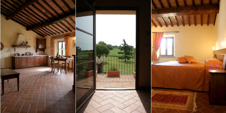 景色はトスカーナ丘陵が広がり羊群、野生の鹿・キジ・ウサギ等が生息し小川が流れ静寂に包まれ