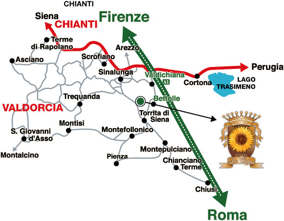 フィレンツェ・シエナ・ペルージャ・アッシジ等へのアクセスも容易で、観光へも便利。