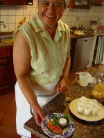 アグリツーリズモの建物は16世紀からのものだそうで、外見はとてもアンティーク。建物の中は必要に応じて改築されて使われており、とても快適です。高台にあるアグリツーリズモのお部屋からは海が見え、カプリ島がすぐ目の前に!イスキア島、ベスビオ火山、ナポリの街並みも見渡せ、ロケーションは抜群です。大抵のアグリツーリズモがそうであるように、このアグリツーリズモも家族皆が協力して仕事をこなしています。お料理上手なマンマ、優しそうなご主人、そして家業をしっかり受け継いでいる息子さん。当たり前の光景なのかもしれませんが、とってもホッとする雰囲気です。