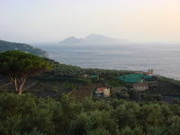 アグリツーリズモから見える夕刻時のカプリ島アグリツーリズモから見えるベスビオ火山お天気の良い日に行きたいカプリ島写真は何回かに分けておくります。