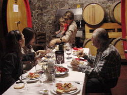 カンティーナ(ワイン蔵)の中で家族とランチ。