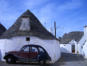 ★アイアピッコラ区 人々が、今でも暮らす生活地区 トゥルッリのその殆どが現在もなお住居として使われている。駅から来ると、 モンティ地区の手間の広場を左に曲がった所になる。外にイスを出し腰掛けて、話す住人達が、 「中に入って見てみていいよ」と気軽に声をかけてくれる。見せてもらったお家の梁は、昔ながらのオリジナルで、 小さなロフトがその上にあった。昔ながらのものを残して保存していくのはどこの国も同じだが、高くつくらしい。 「この家を改築した時に床のタイルは新しいものと交換しちゃったけどね、お家はおばあちゃんから受け継いだのよ」とシニョーラは言っていた。 気さくな会話と、はためく洗濯物やキッチンから聞こえるラジオの音がなんだか情緒たっぷりで、まるでタイムスリップした気分になれる。 この地区は約400のトルッリがある。 ★モンティ区 地区いっぱいに点在するまさに、トゥルッリの里 7つの通りから構成されているこの地区には、約1000のトルッリが隣接して建っていて、まさにトルッリの里。 道から小高い丘に向かってトゥルッリがにょきにょきと建っている風景には「はるばる来たな〜」といった感が…。前出のジュゼッペ・マッフェイさんのお店もこの地区にある。 緩やかなのぼり坂を上がり、あの有名なトルッリのSant'Antonio教会を見学。 教会のそぐ側のレストラン、サジタリオで遅い昼食。気取らない地元の料理で、なかなかのもの。 その後正面の公園の裏手に廻ると、知らなかったがアイアピッコラ同様、住居に使われているとっても静かなゾーンだった。 モンティ地区の中にはレストラン、お土産屋さんがほとんど。驚いたのはみんな日本語で話しかけて来ること。こんな南イタリアの小さな町で、まさか日本語で話せるとはびっくり! 丘のてっぺんに建っている