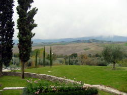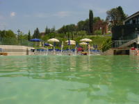 トスカーナの奥深い丘陵にある温泉プールからの景観は素晴らしいです。