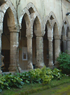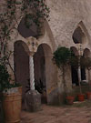 特に回廊の流れるようなラインの柱は絶賛されている。アラブ独特の工芸的なアーチを交差させたデザインは必見。この回廊はもともとアマルフィの有力者の墓地だったもの。真っ白な壁が南イタリアの太陽に照らされた、光り輝く。小さな中庭には熱帯性の植物が植えられ、どことなく砂漠のオアシスを彷彿させる。回廊内の各所には当時のフレスコ画が幾つか残っている。回廊横からは、博物館へ進むことができ、博物館の階段を降りるとDumoの地下、サンタンドレアの地下聖堂へ進むことができる。 |