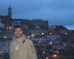 新約聖書の「マタイによる福音書」を映画化した、パゾリーニの作品「奇跡の丘」。 「キリストの聖地エルサレムの部分はこのマテラで撮影されたんだよ、ちょうどここほら、夜景はまさにエルサレムって感じでしょ?」 なるほどキリストが生まれてきたエルサレムの馬小屋がありそうな雰囲気。 このテラスは、サンタマリア デ イドリス教会前のテラス。そのほか、「天空の城ラピュタ」のイメージはこのマテラから得たとか、そして、2004年にはメルギブソン監督の映画”パッション”もマテラで撮影された。 イタリアの名監督、ジュセッペトルナトーレの「明日を夢見て」もシチリアの街という設定で、マテラで撮影された部分もあるのだ。 |