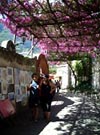 devil”でどちらもハンプリーボガードが訪れている。今と差のないこの海を眺めている彼女の写真が公園にあった。ピンクの壁をもつパラツッオサッソーホテルと、眼下に見えたパルンボの庭園をアップしています。さて、散歩道に戻りましょう。公園を引き返し、Comune(市役所)の前を通り道に沿って歩くと、今度は犬がワンワンと向かってきます。そう、この崩れそうながらも、素敵なビザンチン風のデザインの建物は作家”Andre' Gide"が1902年に、Edward M Foresterが1928年にどちらも訪れた家。作曲家ワーグナーをはじめ映画や作家、アーチスト達がここを訪れ芸術活動を引き起こさせる不思議な空気とエネルギーが今日もここに満ちているような気がする。 |