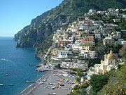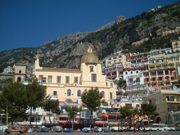 アマルフィ海岸の玄関口はなんと言ってもこのソレント。民謡「帰れソレント」で世界的に有名で常に観光客が耐えない。特に年配のアメリカ人、イギリス人などのツーリストに人気のようで、海辺にはEXCERSIOR VITTORIOをはじめ高級ホテルが立ち並ぶ。町の雰囲気は常に明るく夏場は夜遅くまでレストランや土産物屋も開いていし、近郊のリゾートホテルやレストランがほとんど閉まる中、ここソレントは開いている店が多いのが特徴。また、カプリまで20分、ナポリまで一時間、夏の間はアマルフィやポジターノを結ぶ船も運航されるので、ここを拠点に観光をするのもお勧めです。 |