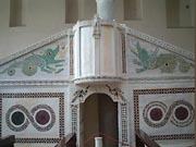 どちらも初期キリスト教教会における説教壇だ。モザイクを小さい片でパターンを組んだ「ゴーズマーティ様式」といわれ11世紀の大理石加工職人が